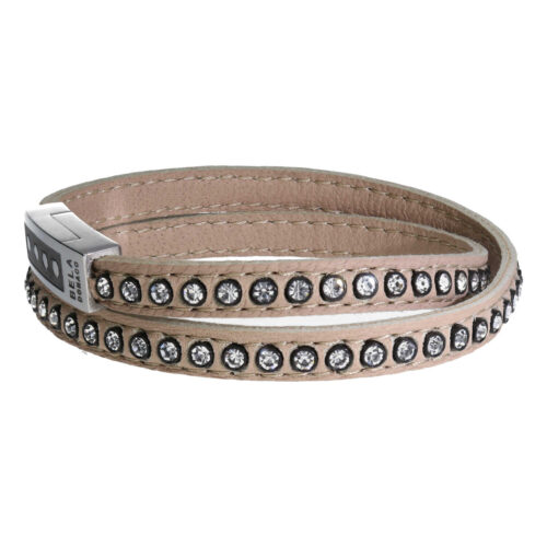 Wikkelarmband Business line W7 – RVS – Swarovski kristallen – beige nappa leder