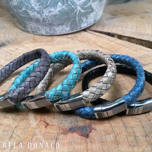 - Deze stijlvolle armband uit onze Business line collectie combineert een robuuste RVS magneetsluiting met gevlochten vintage taupekleurig leder. De sluiting, geïnspireerd op de klassieke Dunhill-aanstekers, geeft de armband een unieke retro uitstraling. Verkrijgbaar in verschillende kleuren.