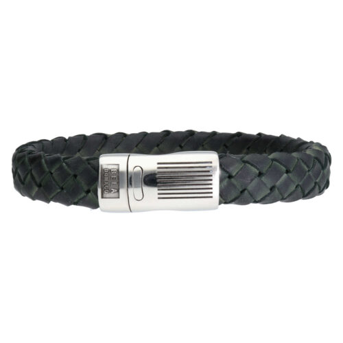 Armband Business line W12 – RVS – Gevlochten vintage donker groen leder