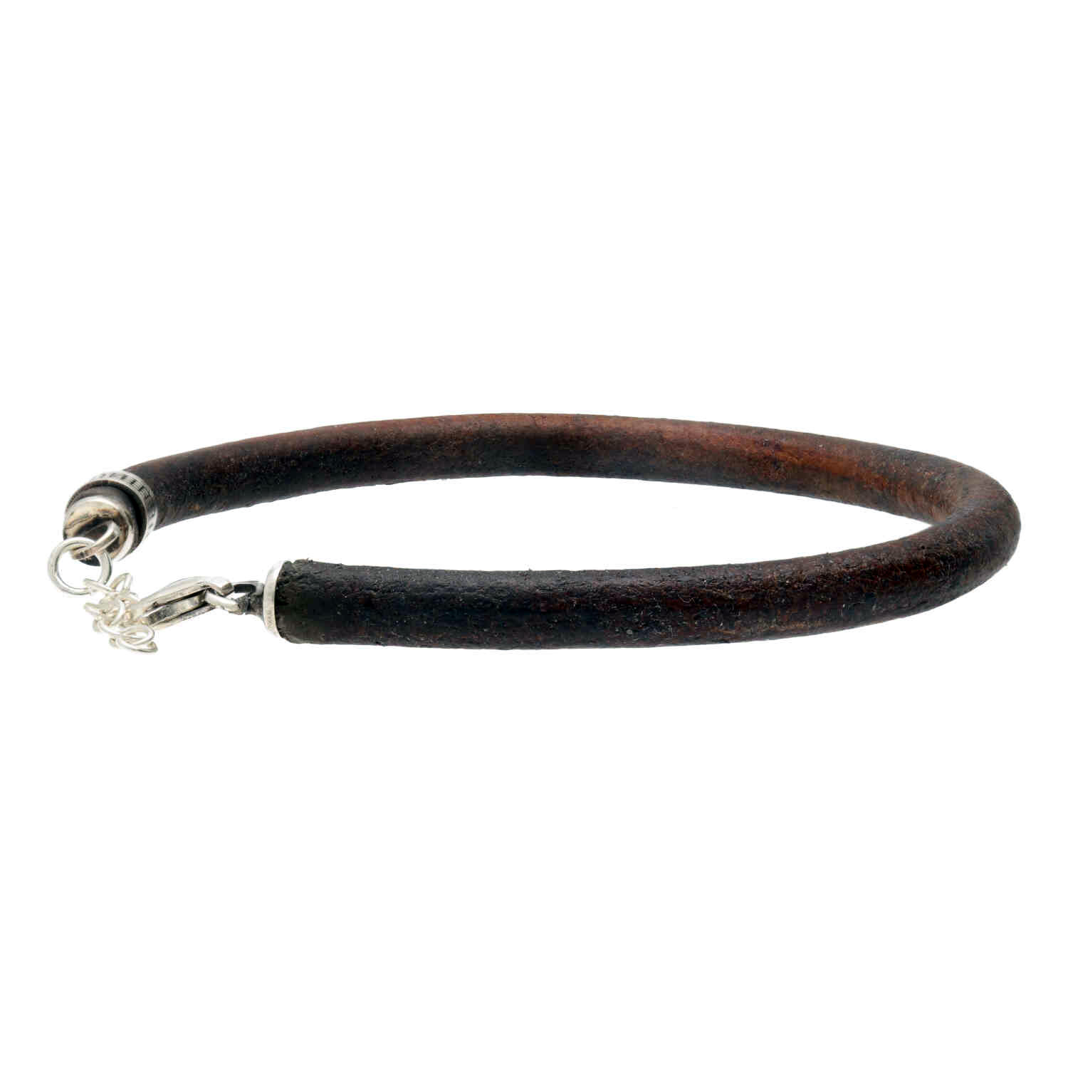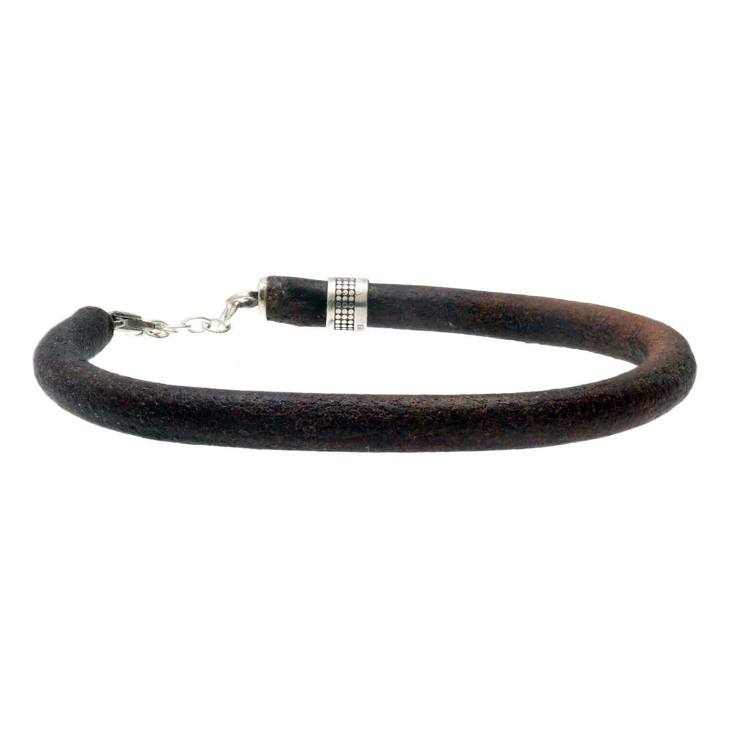 Armband leder w5 – vintage bruin leder – Geoxideerd Sterling Zilver