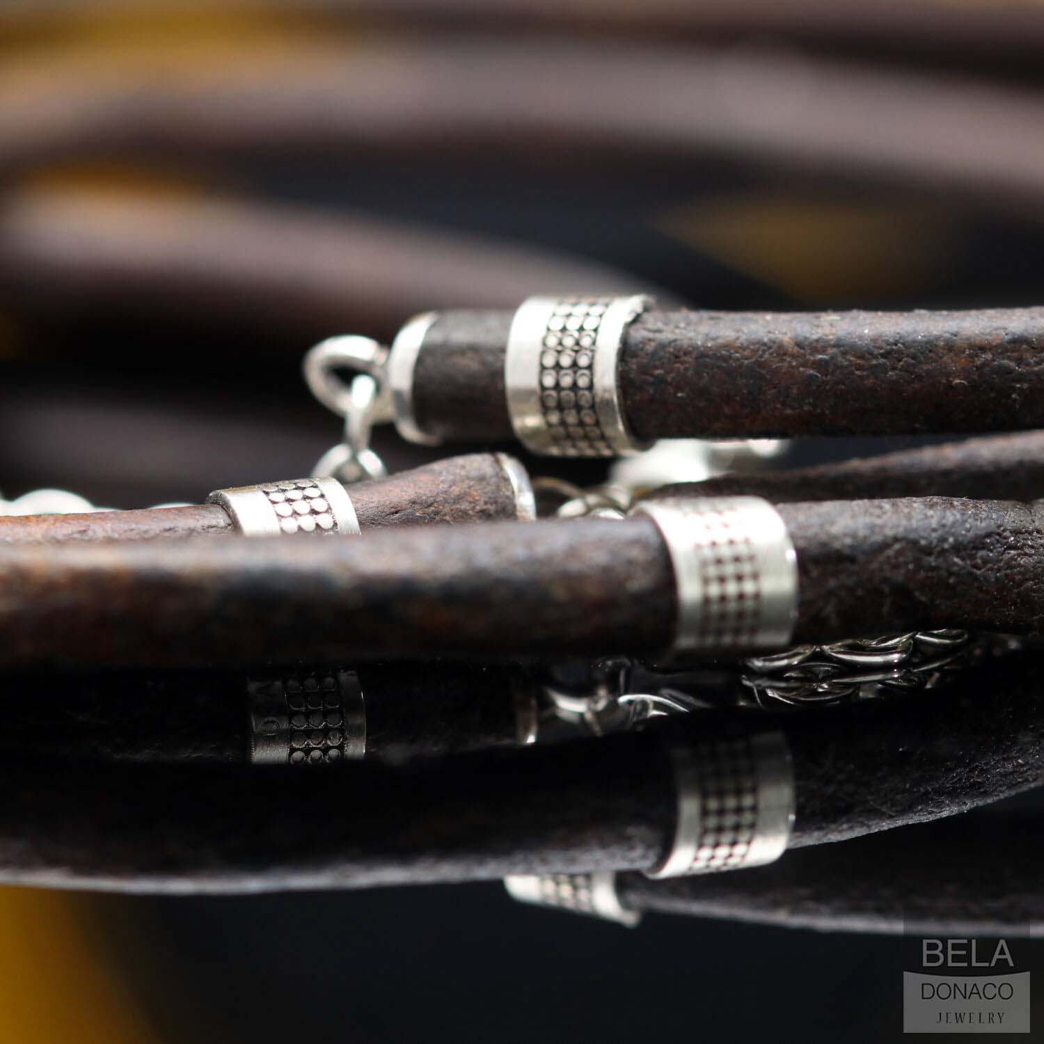 Ketting leder w5 – vintage bruin leder – Geoxideerd Sterling Zilver