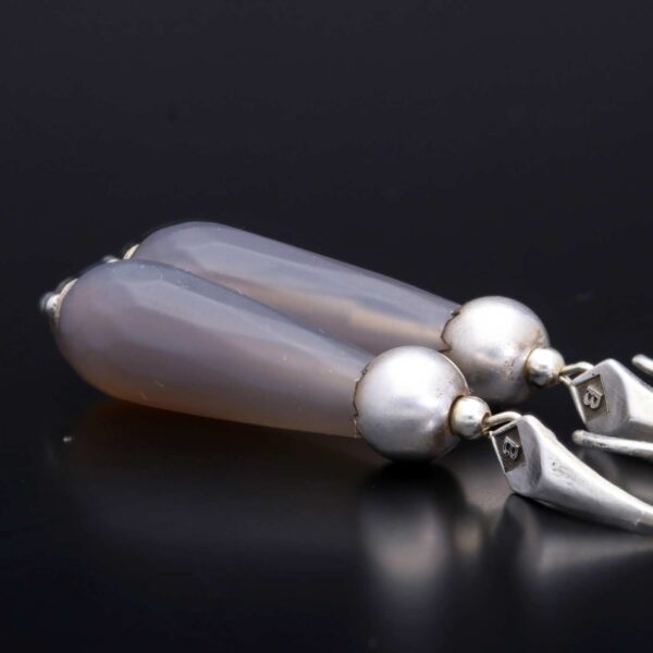 Elegante blauwe Agaat Art Deco oorbellen met Jade druppels