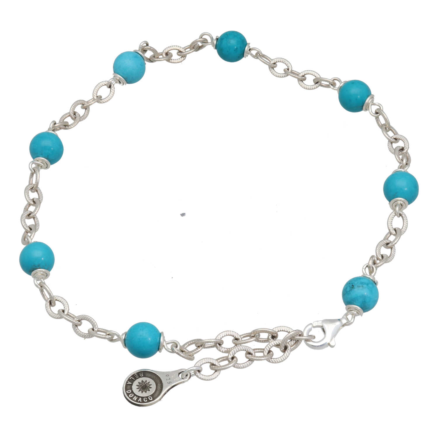 Deze verfijnde armband combineert elegantie en vakmanschap. Het Sterling Zilveren armbandje is versierd met 6 mm Hubei Turquoise kralen van uitzonderlijke kwaliteit. Afgewerkt met een Sterling Zilveren slotje en een Bela Donaco Tag, biedt het armbandje een verstelbare lengte tot 28 cm. Het stevige Sterling Zilveren kettinkje met schakels van 4 mm x 5.5 mm en een subtiele ribbelstructuur voegt een extra vleugje luxe toe.