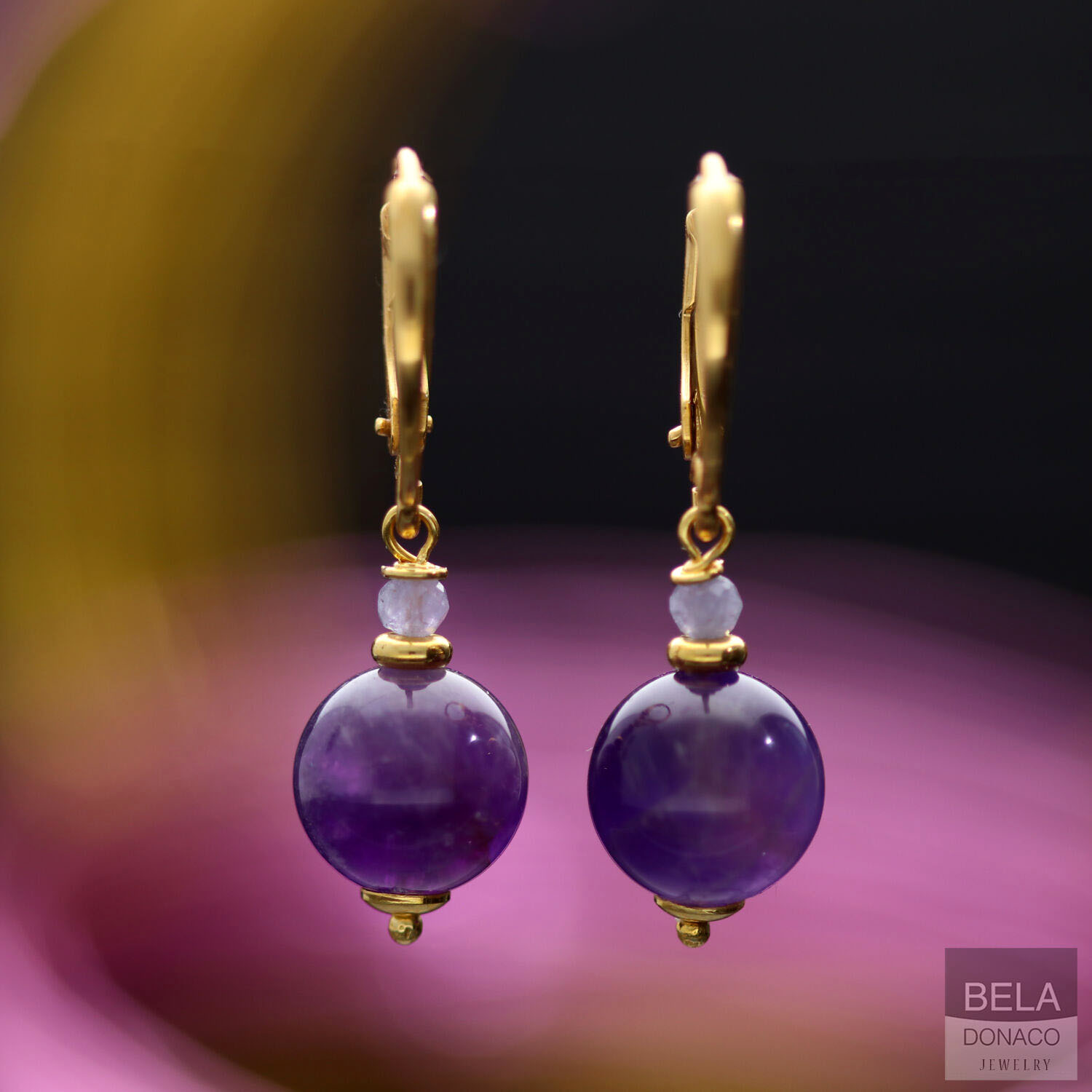 Oorbellen Bohemian B10 – Amethist – Tanzaniet – 24K verguld Sterling Zilver