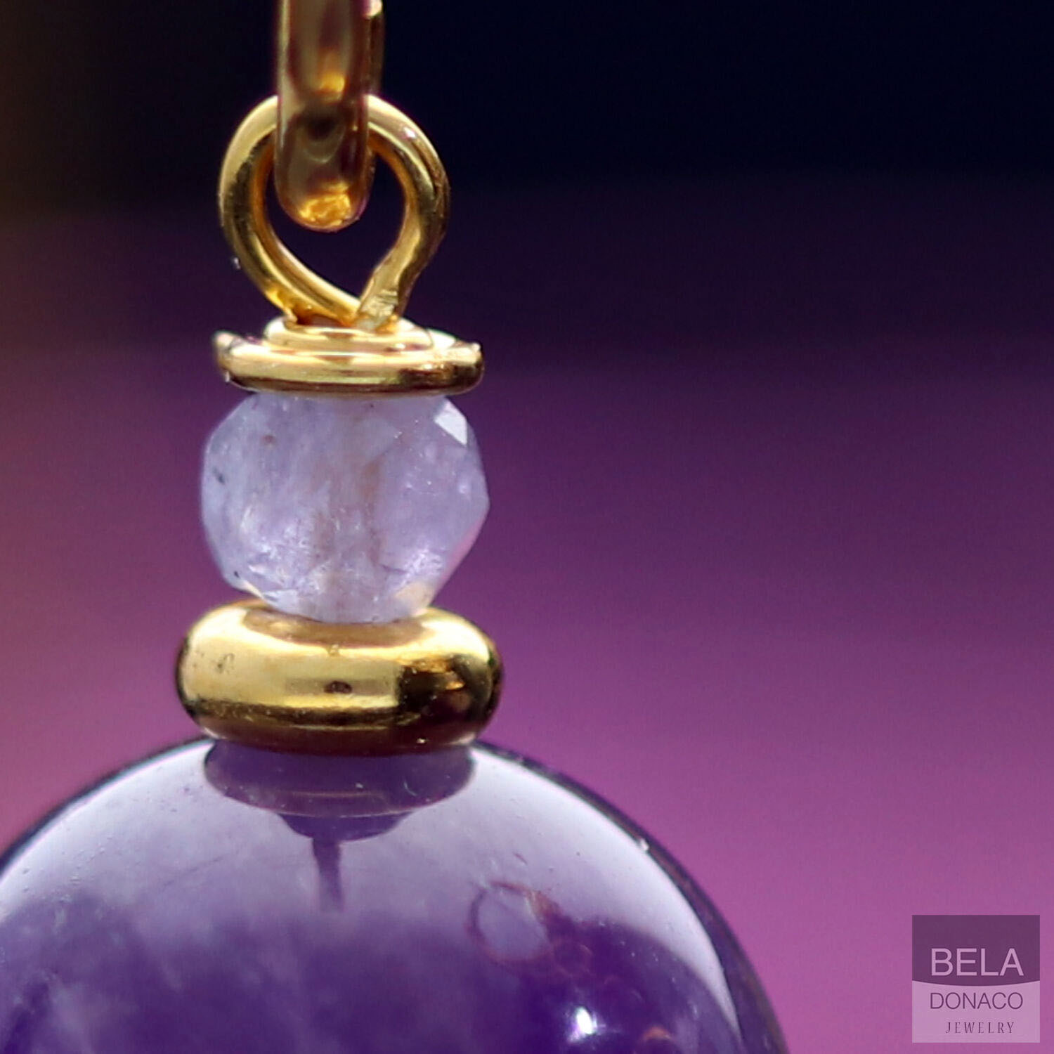 De oorbellen uit onze Bohemian collectie stralen elegantie uit met een prachtige Amethist kraal en een facet geslepen Tanzaniet erboven. Deze verfijnde sieraden zijn afgewerkt met 24K vergulde Sterling zilveren haken, wat zorgt voor een delicate en luxueuze uitstraling. Ze zijn perfect voor elke gelegenheid en bieden een vleugje kleur aan elke outfit.