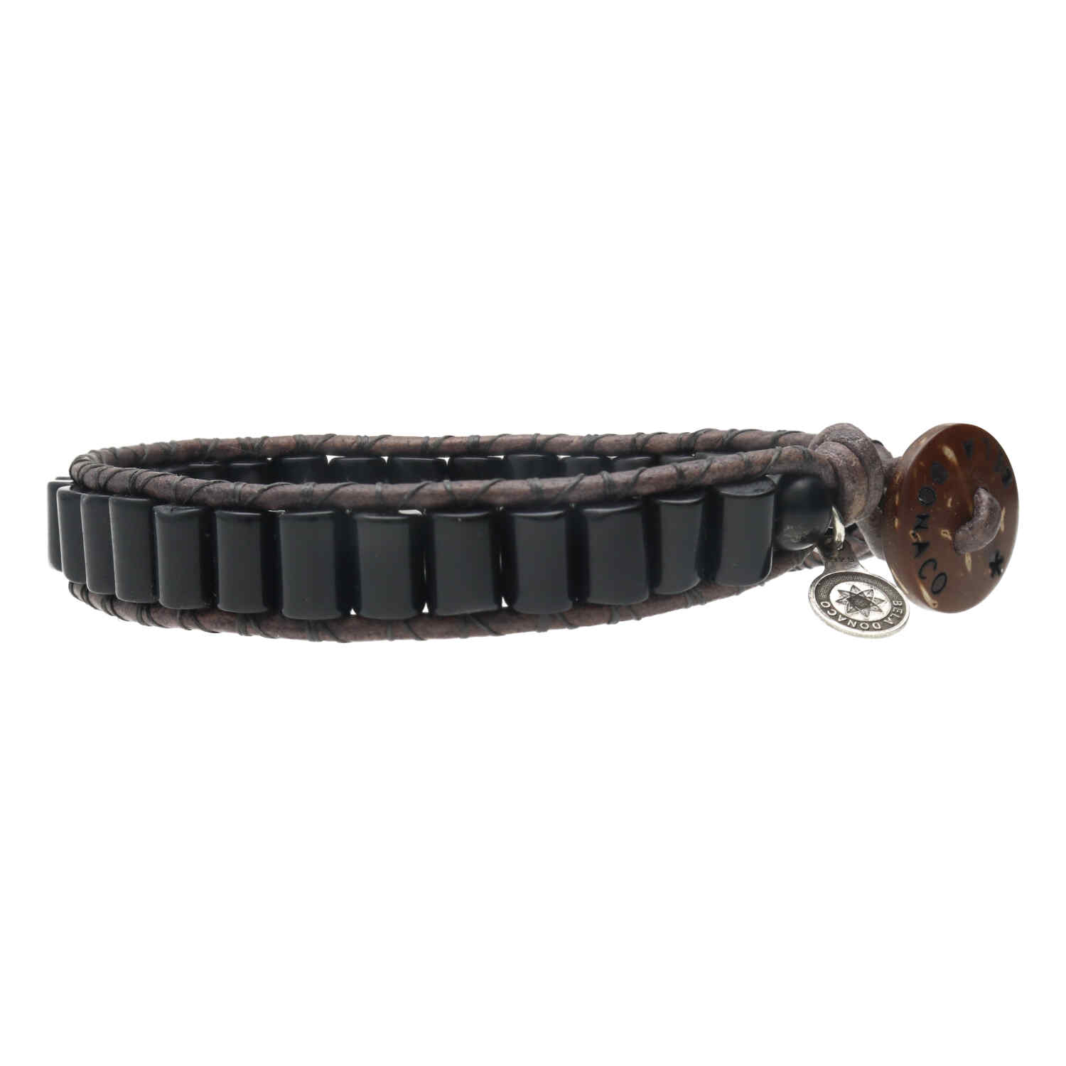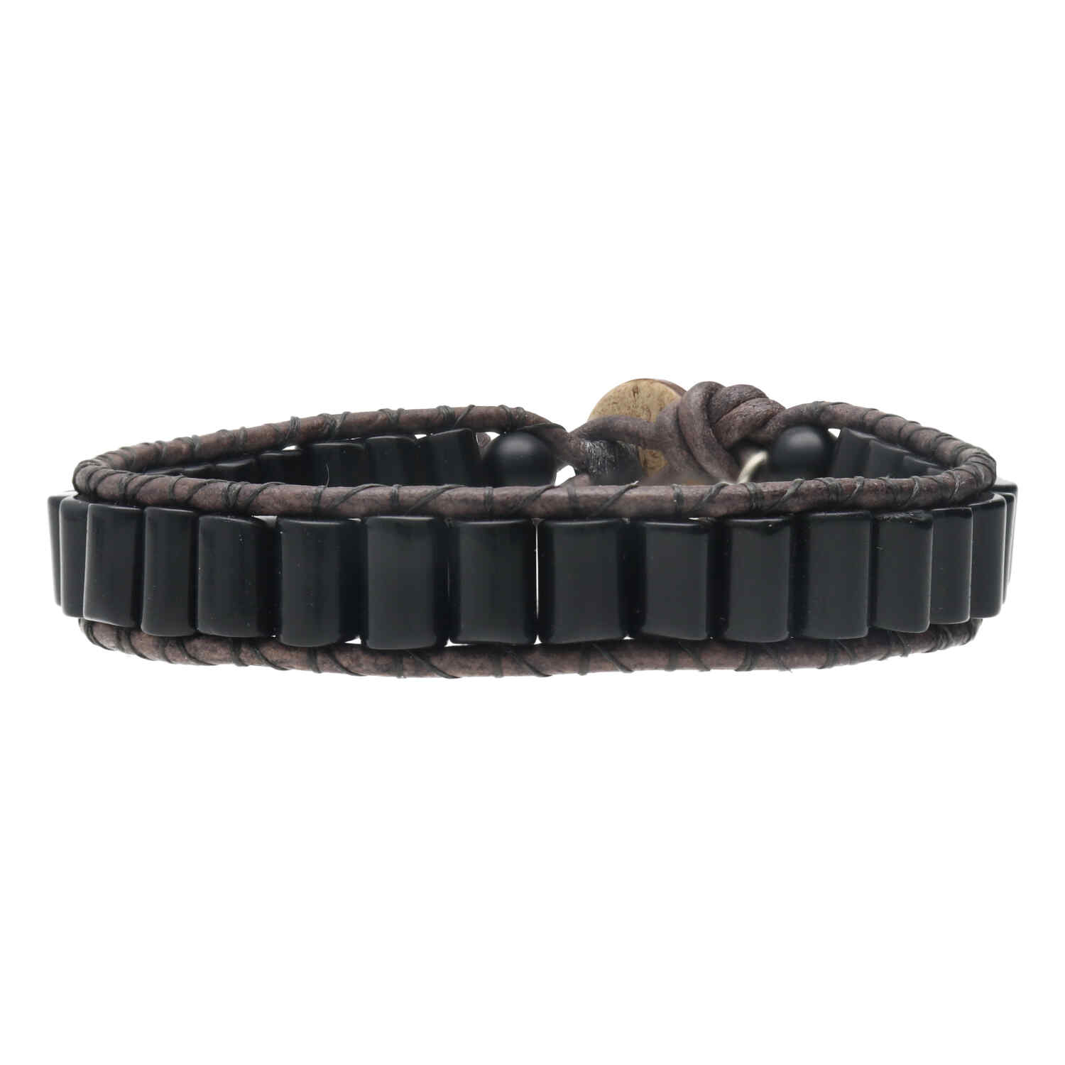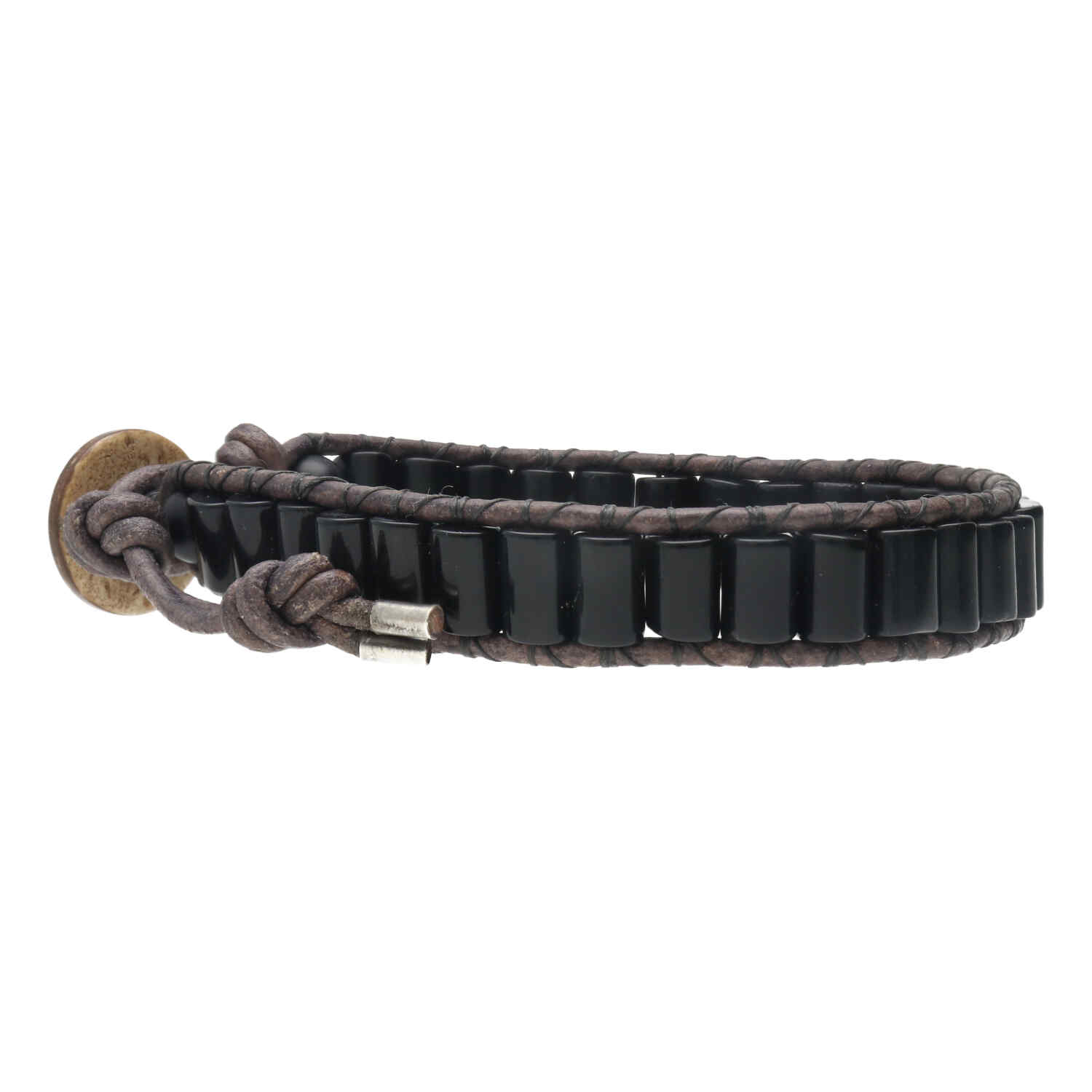 De armband bestaat uit hoogwaardig buffelleder, dat bekend staat om zijn sterkte en duurzaamheid. Gecombineerd met de elegante uitstraling van de 6 mm Obsidiaan kralen, creëert deze armband een robuust en toch verfijnd uiterlijk. Aan de uiteinden zijn twee Onyx eindkraaltjes geplaatst die de armband een extra draai geven aan het ontwerp.