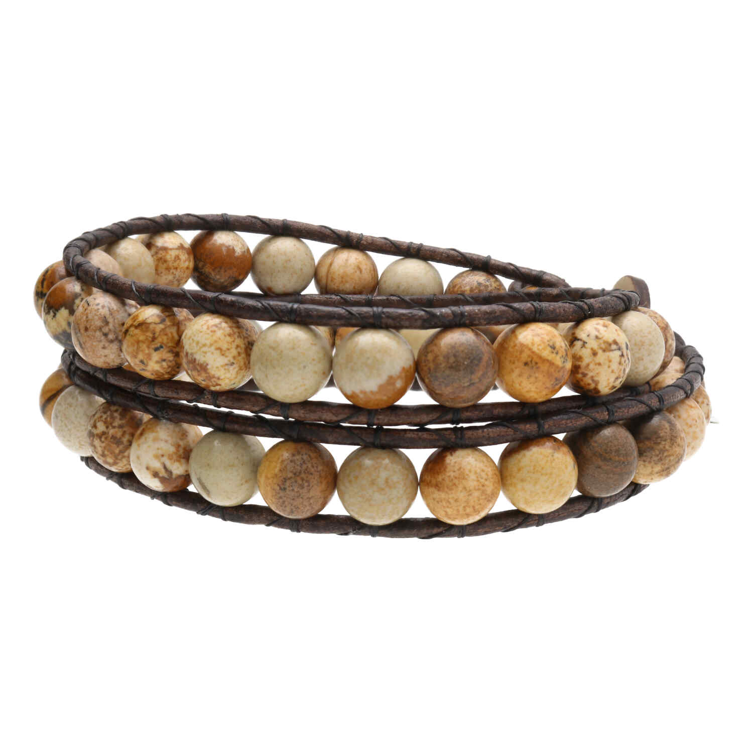 Wikkelarmband Classic B8 – Picture Jaspis – Bruin Leder