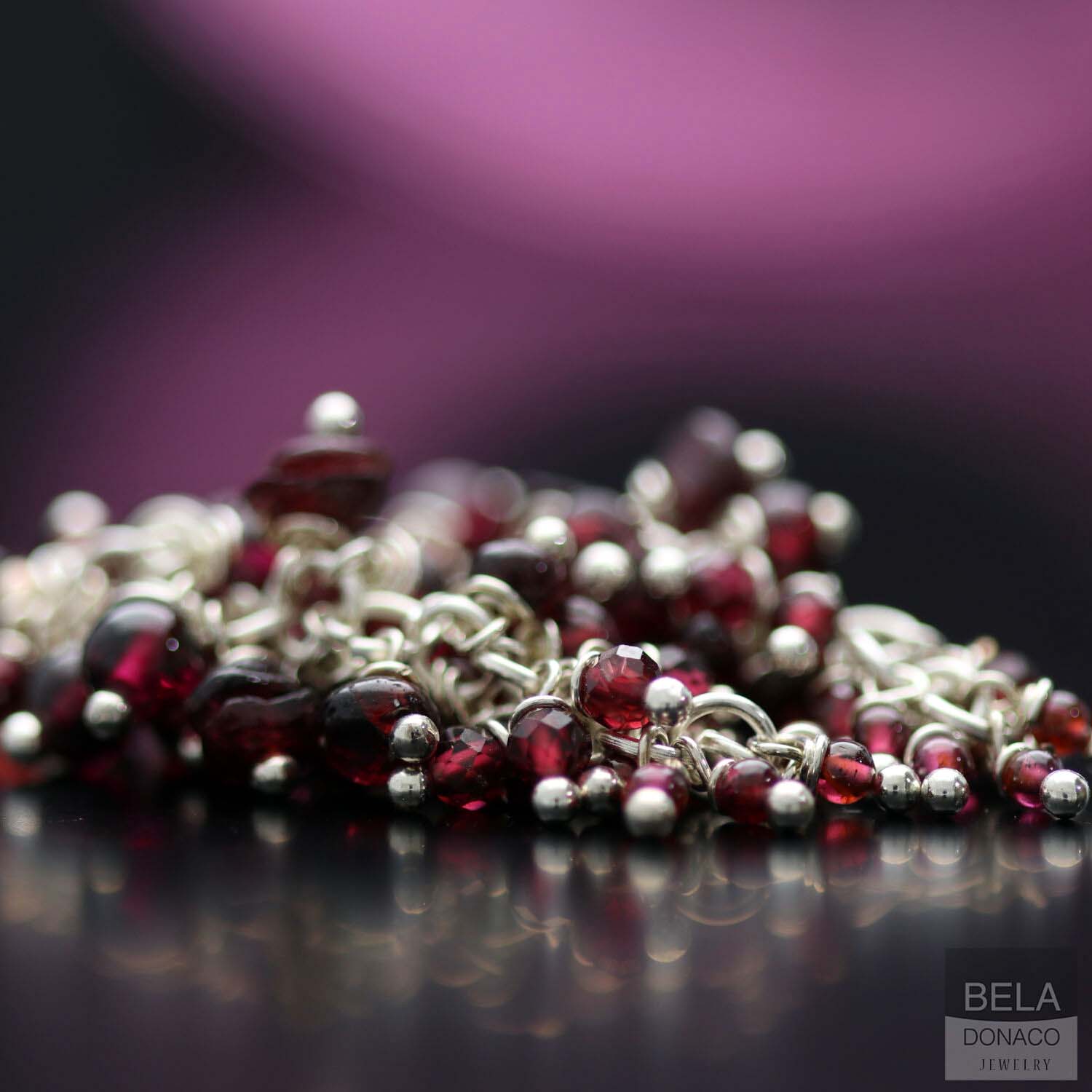 Elke oorbel is verfraaid met diverse formaten granaat kraaltjes die facet geslepen zijn. De diepe rode kleur van de granaat geeft de oorbellen een tijdloze elegantie en opvallende uitstraling.